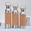 Custom Recycled Vacuum Insulated Metal Stainless Steel Drinking Water Bottle With Cork Sleeve Bamboo Lid